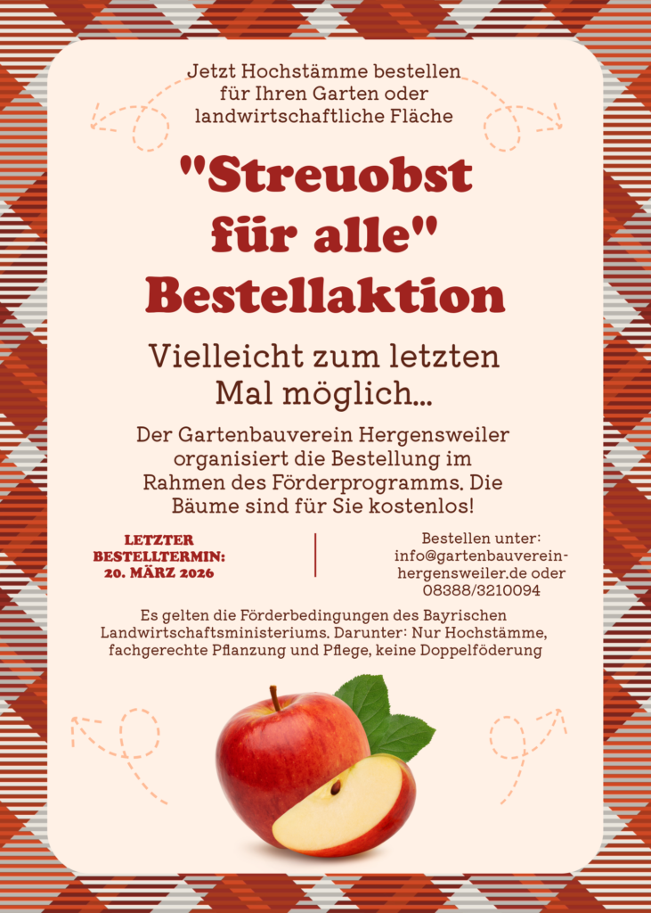 Bei Interesse bitte melden an info@gartenbauverein-hergensweiler.de